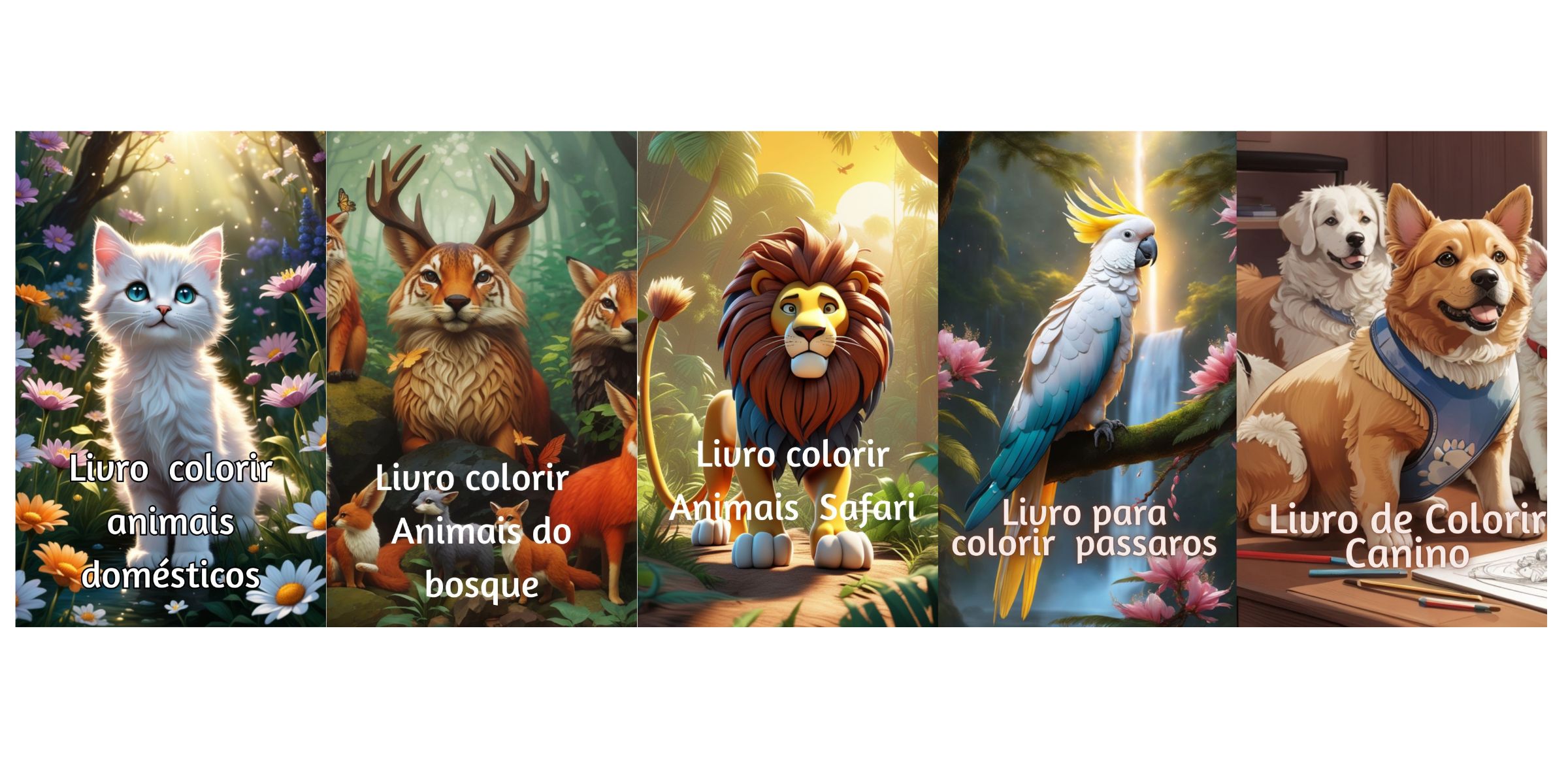 Floresta verde com árvores altas e luz do sol filtrando pelas copas. Um jardim colorido, cheio de flores vivas. Um campo aberto, dourado pelo vento.